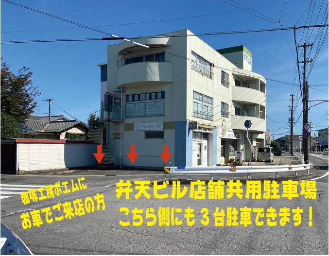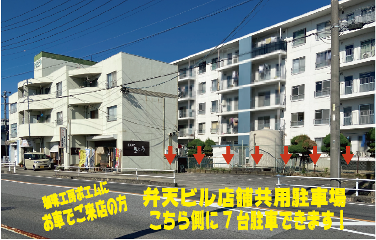弁天ビル店舗共用駐車場がお蕎麦屋さんの右隣側に7台あります