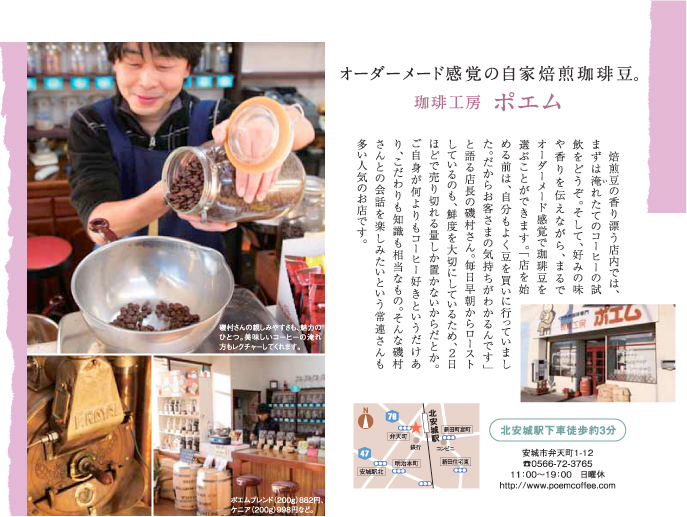 珈琲工房ポエム 安城市 西尾市 コーヒー 珈琲 岡崎市 幸田町 ハーブティ−ワン10月号で、西尾店が紹介されています。「コーヒー」とカテゴリ分けされていますが実際には「コーヒー豆」屋です。さりげなく宣伝...